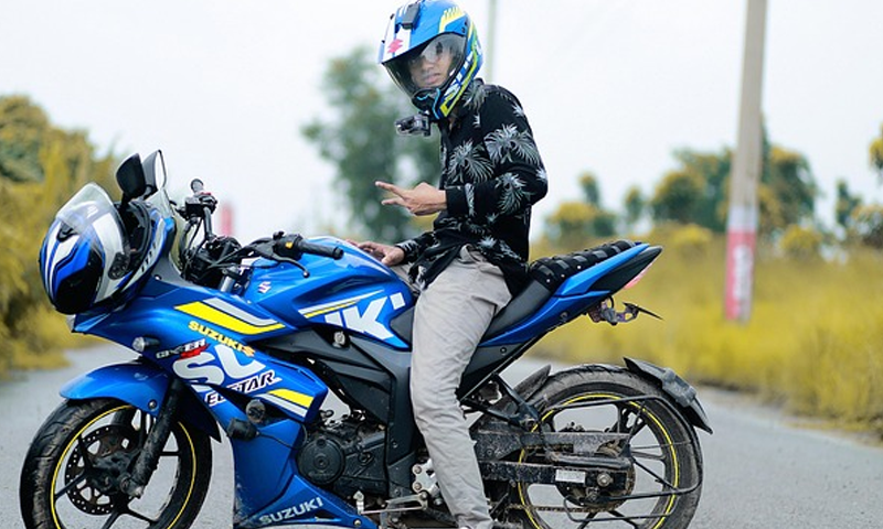 The biker froze.
